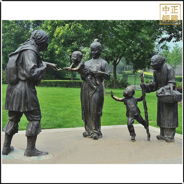銅雕古代人物雕塑多用于園林景觀雕塑,分布在住宅、公園和其他公共場所,把古代文化進行傳播與展示。它賦予園林景觀以更加高雅、美觀的氣質,給觀者以寧靜、深遠的視覺感受,給人們留下了無盡的回憶與思索。